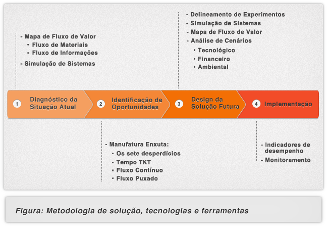 Utilizando-se de uma metodologia sequencial, realizamos todo o mapeamento dos recursos e processos de sua empresa, diagnosticamos fontes de desperdício e oportunidades de melhoria de capacidade e produtividade (estado atual).
